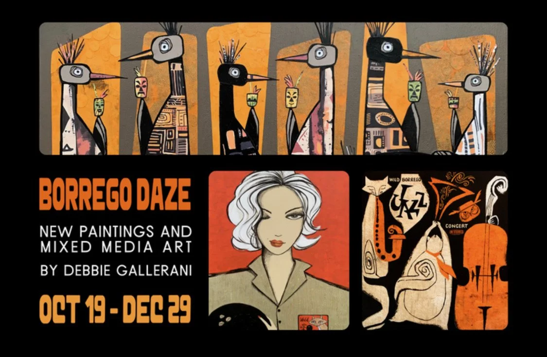 Her, “Borrego Daze,” show is a meticulously detailed artistic interpretation transforming Borrego life, business and wildlife into an eclectic group of characters with a twisted bite of humor. This is an important artist who’s career is going to develop. Debbie Gallerani will not stay creatively static on her artistic journey.